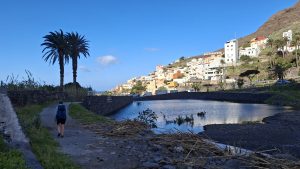 Heute gab es zwei Wege zur Auswahl: entweder ganz weit nach  Westen wandern und dann auf dem Camino de la Merica über den Grat zwischen Meer und Tal 1200 Höhenmeter  in den unteren Teil des ValleGranRey absteigen.  Oder langsam über zwei früher bedeutende Dörfer Höhe verlieren und dann nur 800m auf dem GR steil ins obere ValleGranRey  wandern.