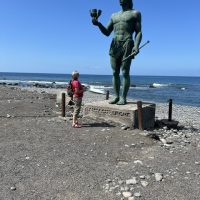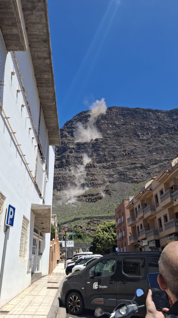 Dann geht es weiter zum Strand. Auch hier, wie auch auf dem Weg ins Tal sind die Folgen des Unwetters eindeutig sichtbar: mehrere Brücken sind weggerissen und die Wege voller Geröll. Am Strand genieße ich das warme Wasser und war eigentlich tiefenentspannt auf dem Rückweg: wenn sich nicht von einem 500m hohen Steilhang unversehens eine Erdlawine gelöst hätte und mit Getöse den Berg hinunter gebraust wäre. Das ist alles weit weg, aber schon ziemlich beeindruckend ….