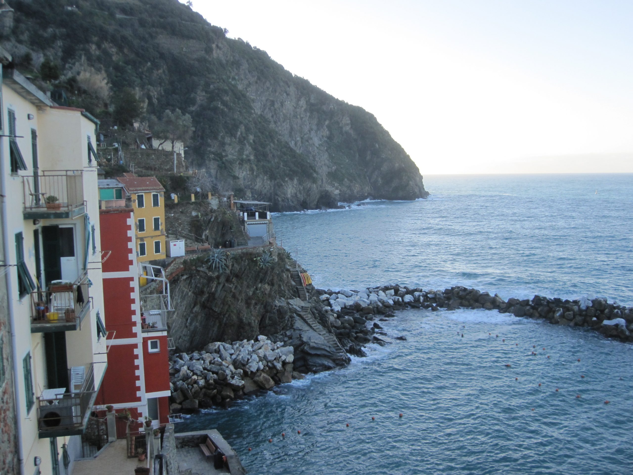 Riomaggiore ist ein Ort , der aussieht, als sei er wie mit ineinander verschachtelten Legosteinen in ein enges Tal gebaut worden. Um zu meiner Unterkunft zu kommen werde ich durch ein Gewirr von Treppen und Gängen (hier „Straßen“ genannt) geführt, um im Endeffekt in meinem Zimmer direkt an der Steilküste, 50 m über dem Meer, anzukommen. Genial! Was für ein Sonnenuntergang!
