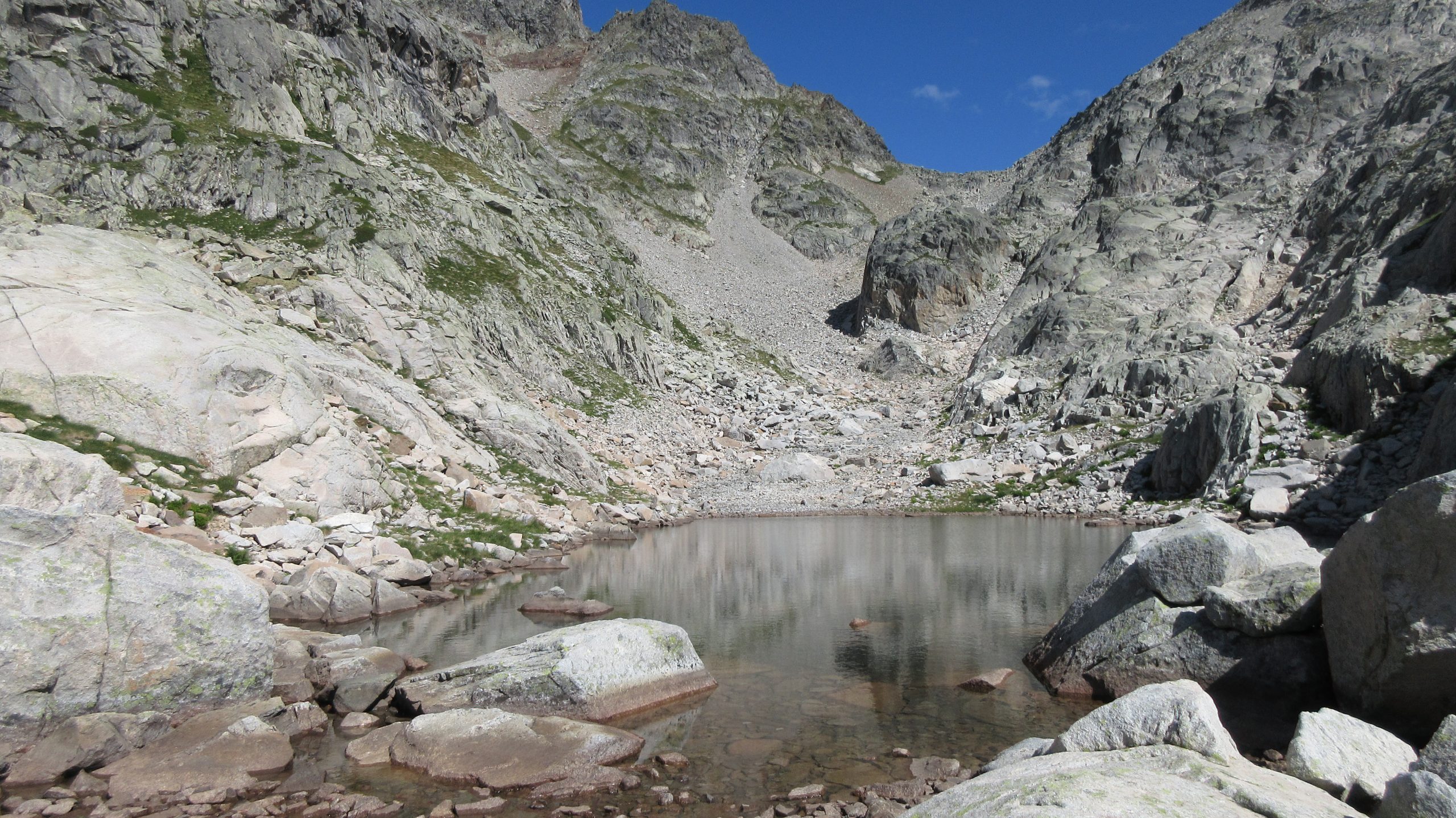 Bei strahlendem Sonnenschein bin ich heute Morgen zu meiner coolen Halbtagesetappe aufgebrochen. Die Wege bestehen aus einem Schild, das die Richtung und ungefähre Wanderzeit angibt – und dann folgt man Fußspuren und ab und zu einem Steinmännchen. Die Wanderwege sind schon als solche ordentlich angelegt – nur sind sie manchmal, so ganz ohne Wanderzeichen, nicht so ganz eindeutig zu finden: Bei gutem Wetter, Karte und GPS hatte ich bislang allerdings noch kein echtes Problem. Zunächst ging es 300m zum Col d‘ Artouste hoch, wo es mir gelungen ist, für einige Minuten Netz zu haben und mit meiner Mutter zu telefonieren und zwei SMS zu schreiben mit dem Inhalt, dass die moderne Kommunikation hier noch nicht angekommen ist…