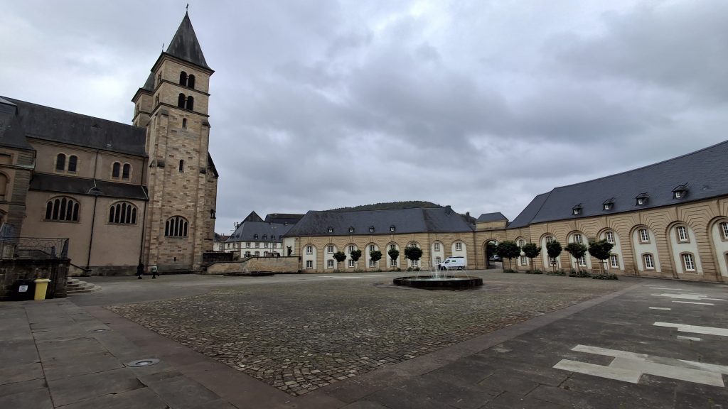 Ich könnte gleich noch 2 Stunden nach Hause fahren, bin aber ziemlich platt, so dass ich es vorziehe, noch einmal auf einem Campingplatz zu übernachten. Hier in Echternach ist auf dem kommunalen Platz- im Gegensatz zu den privaten Plätzen der Umgebung – die Rezeption geschlossen und schon alles winterfest gemacht. Jemand empfiehlt mir, einfach mein Zelt irgendwo aufzubauen, die Duschen seien geöffnet. Danach gehe ich den steilen Hang hinab in den Ort, besichtrige noch die Willibrod Basilika und esse recht ordentlich zu Abend in einer Pizzeria .