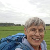 Glücklicherweise führen auch einige Kilometer über die Hochebene und über eine Bahntrasse – sonst hätte ich die 23 km nie geschafft. Mein Rucksack ist nämlich viel zu schwer: ich war mir nach den Erfahrungen vor 10 Jahren nicht sicher, ob es genug zu essen gibt und habe entsprechend eingepackt.  Und das wiegt …. .