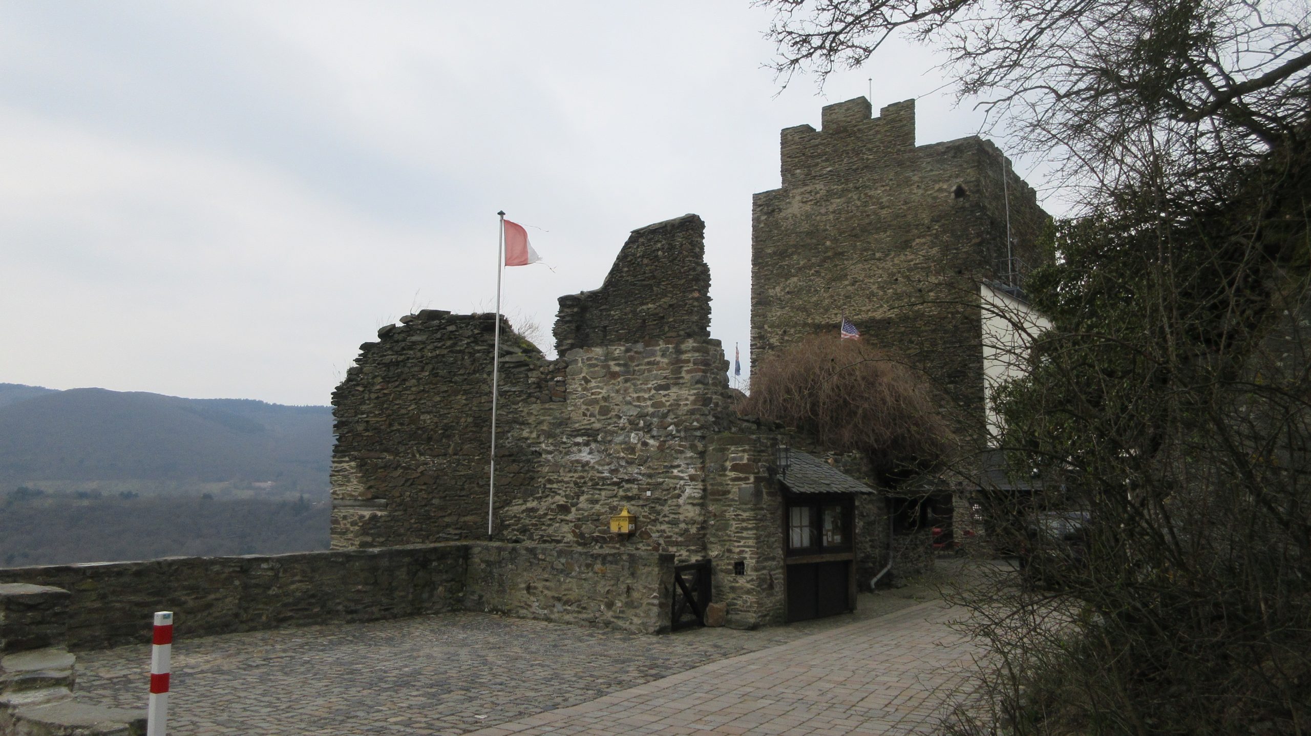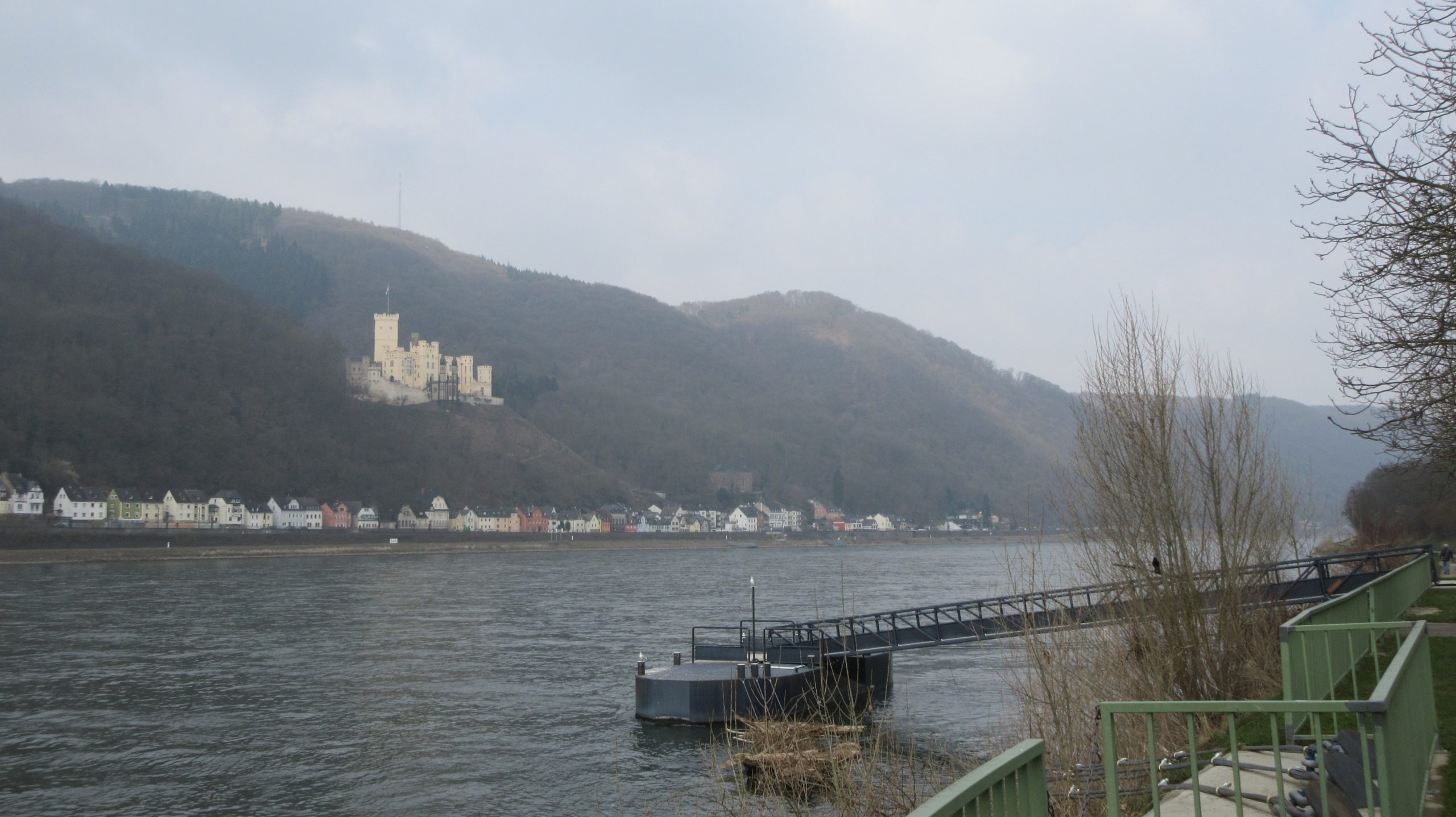 Da das Wetteramt zumindest keinen Dauerregen meldet, habe ich mir für die Karwoche wieder ein paar Etappen des Rheinsteigs vorgenommen. Und wie immer schaffe ich es nicht, früh loszuwandern. Allerdings wird auch die Anfahrt immer länger: inzwischen brauche ich fast 2.5 Stunden bis zum Ausgangspunkt. Und der liegt heute ihn Lahnstein. Von dort geht es zunächst auf die Höhe Richtung Kurkliniken – vorbei an dem sagenhaft hässlichen Hotelmonstrum der letzten Etappe – und dann bei warmem Frühlingswetter immer wieder mit Ausblicken auf den Rhein weiter. Schon bald kommt eine imposante Burg in den Blick – die Marksburg.