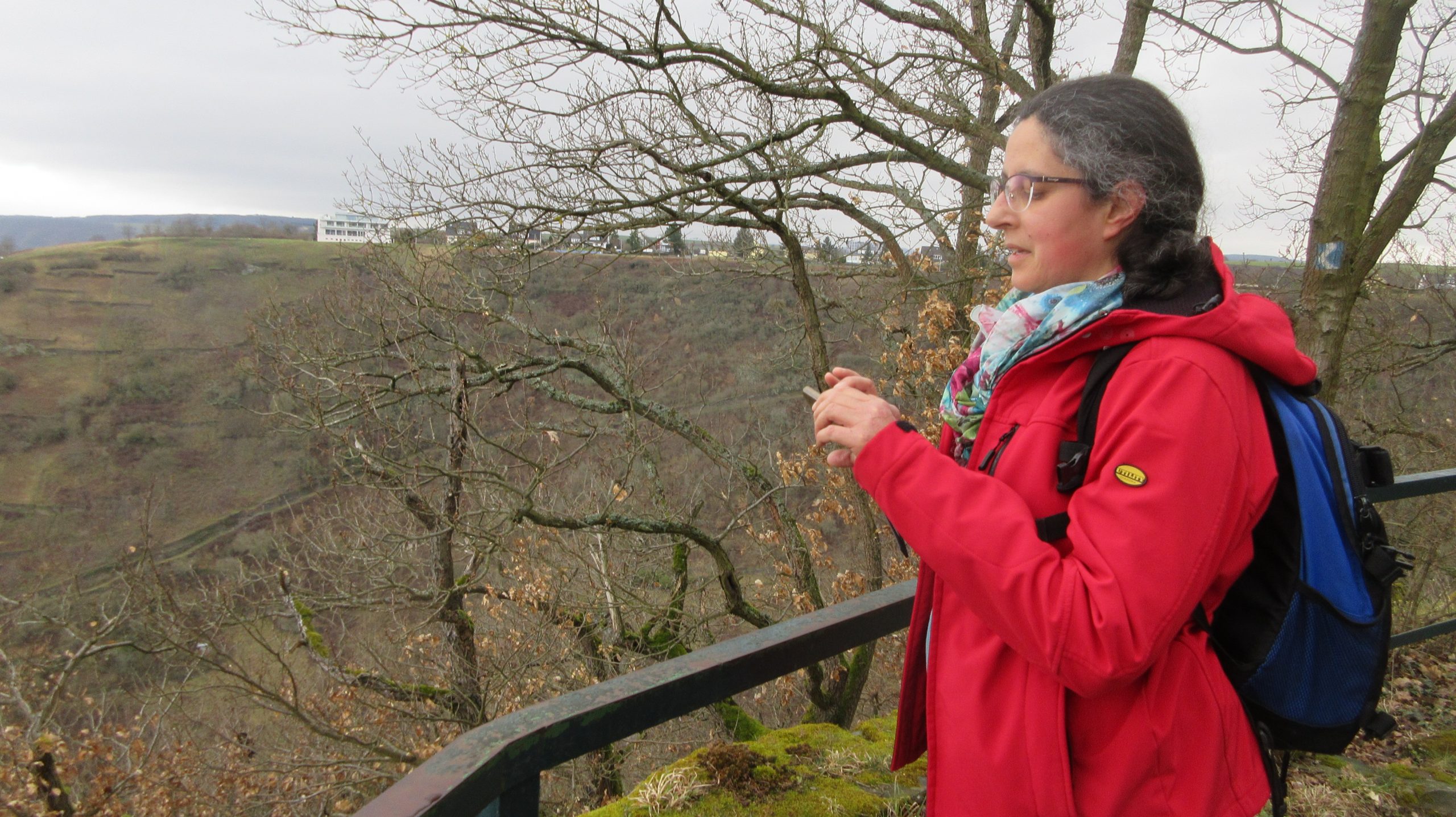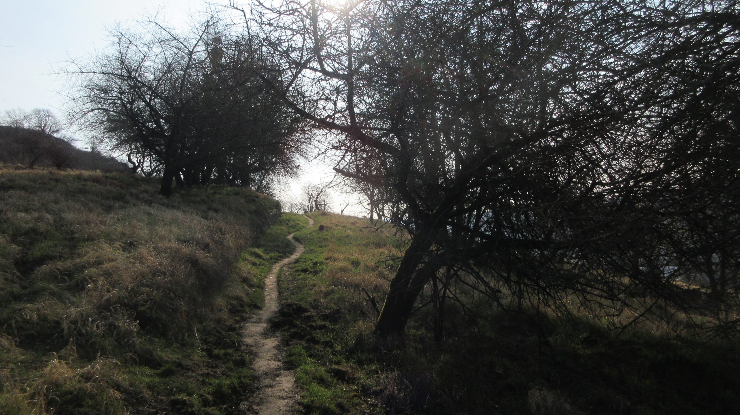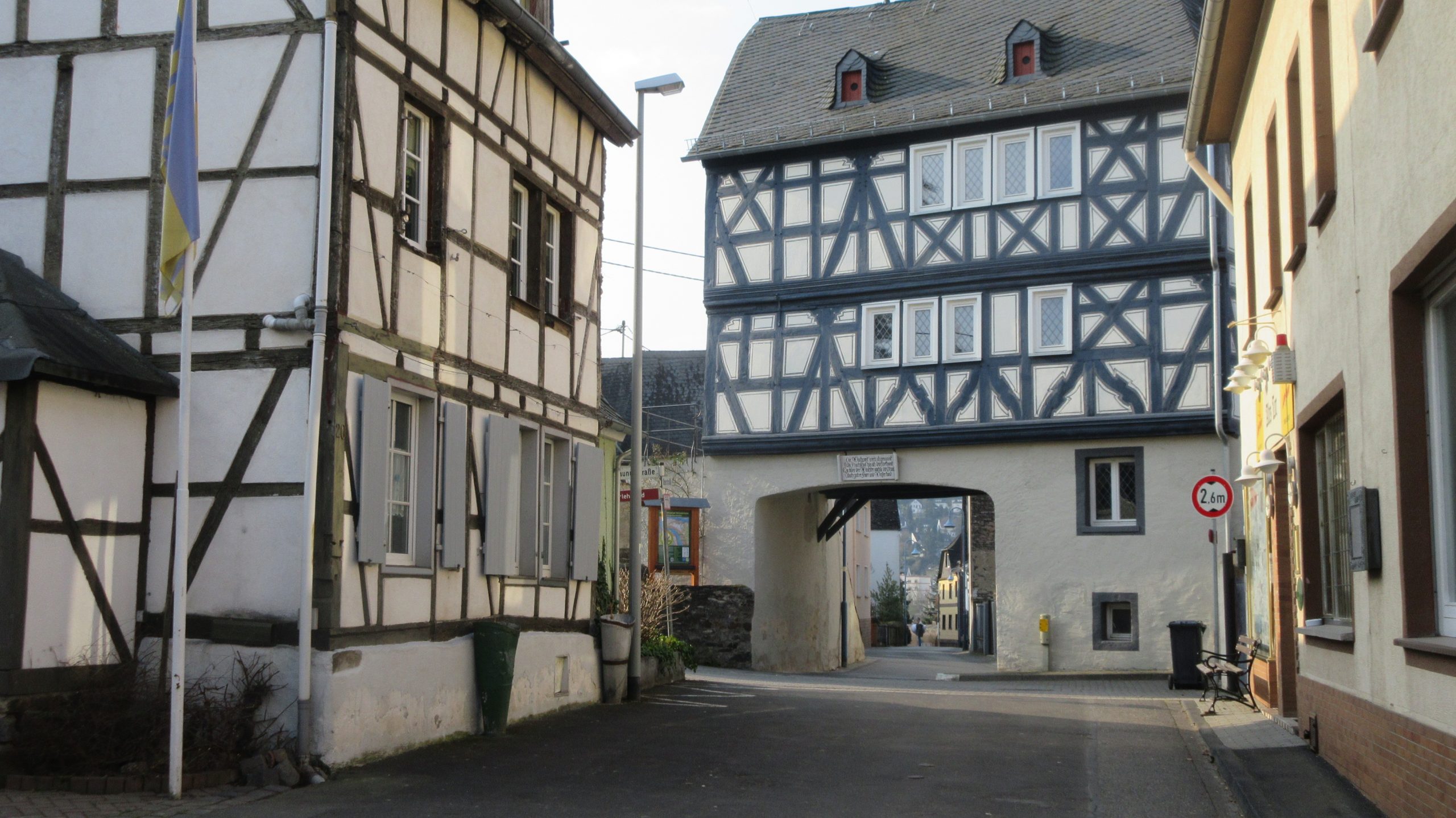 Der Weg geht langsam Richtung Rhein – vor allem begab: wiederum durch Wälder, Weinberge – und führt dann an einer Grenzbefestigung entlang mit Namen ,,Gebück“: das war im Mittelalter eine dichte Hecke (Buchen, Dornen…), die die Außengrenze der Stadt befestigte. So etwas gibt es auch in Aachen – da heißt das „ Landwehrring“.