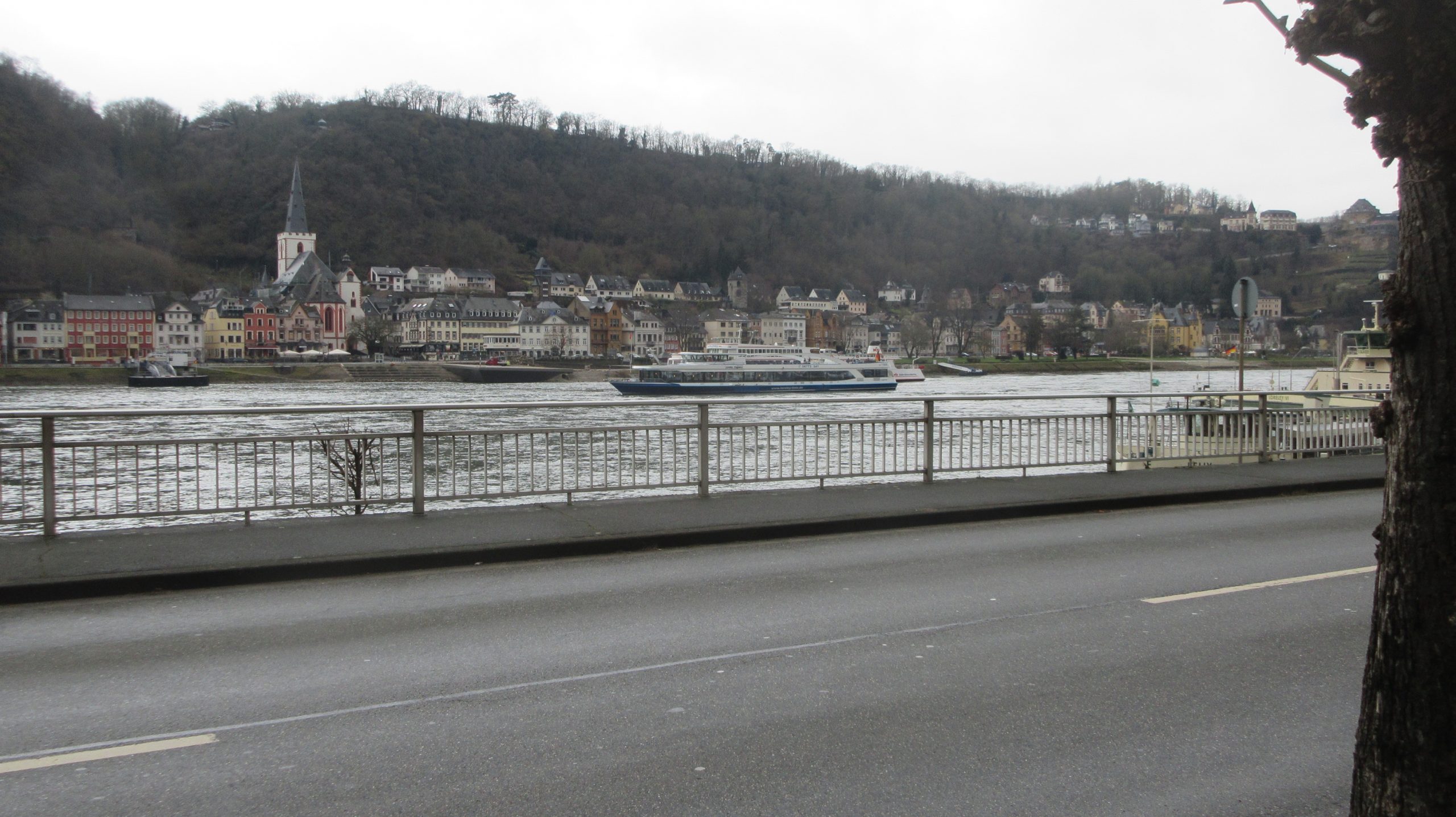 So gehe ich nach kurzer Zeit nach Rüdesheim weiter, werfe einen Blick in die Drosselgasse (ich glaube, ich habe nichts verpasst, mich dort nicht länger aufgehalten zu haben) und dann mit dem Zug zurück nach Lahnstein. Auch heute wieder nur sehr wenige Fernwanderer (insgesamt vielleicht sechs oder sieben im Laufe der letzten Tage), etwas mehr Tageswanderer und vor allem heute am Feiertag viele Spaziergänger. Ich finde die Jahreszeit für den Rheinsteig eigentlich hervorragend- aber trotz der Osterferien haben die meisten anderen das offensichtlich noch nicht bemerkt. Nach Rüdesheim gehen die nächsten Etappen über 60 km durch den Taunus und dann führt der Weg nur noch einmal ganz kurz in Wiesbaden zum Rhein zurück. An sich ist der eigentliche „Rheinsteig“ also hier zu Ende. Ich weiß deswegen auch noch nicht, ob ich den nächsten Abschnitt noch laufen werde. Wenn nicht – bis dahin war es ein unglaublich schöner Weg- absolut empfehlenswert – mit und ohne Hund.