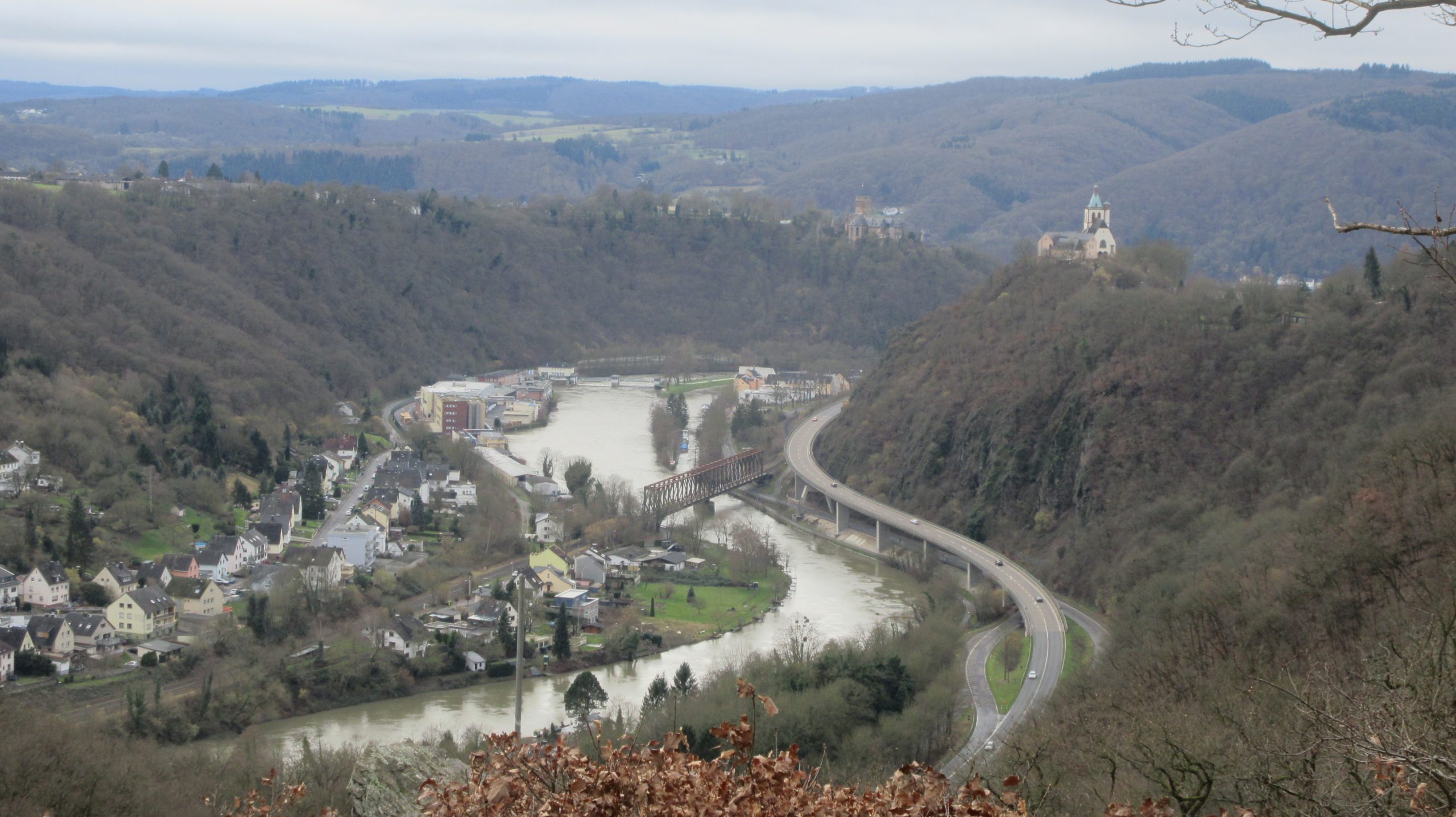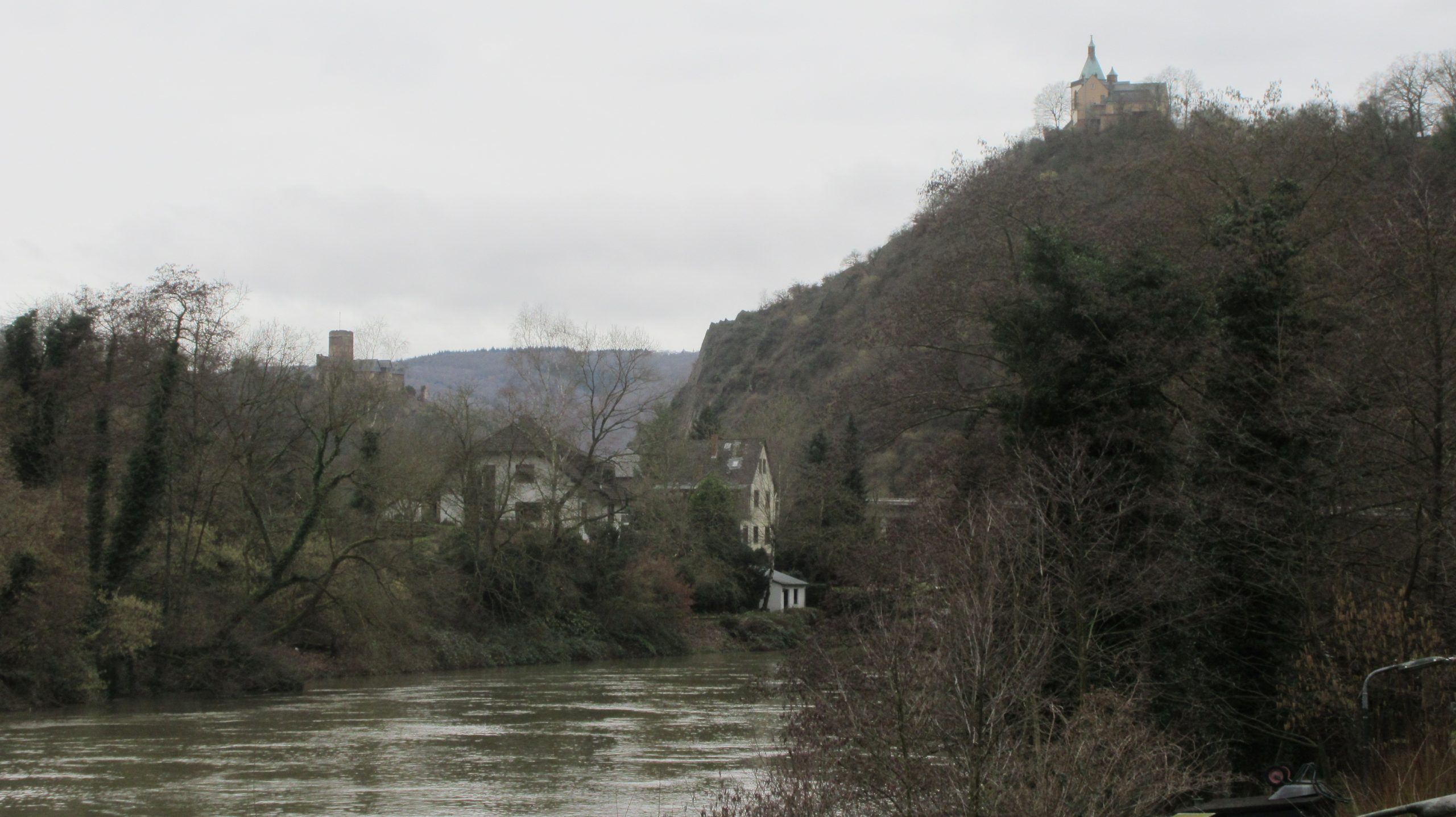 Haute ist es zwar bedeckt, aber überhaupt nicht kalt – der Blick von meinem Balkon in der 12. Etage auf die Lahn und die Lahnberge inspiriert und motiviert mich, so dass ich dann nach einem ausgiebigen, reichhaltigen Frühstücksbuffet in bester Laune den Rheinsteig in entgegengesetzter Richtung gewandert bin – das Hotel lag doch deutlich südlich der Stadt.