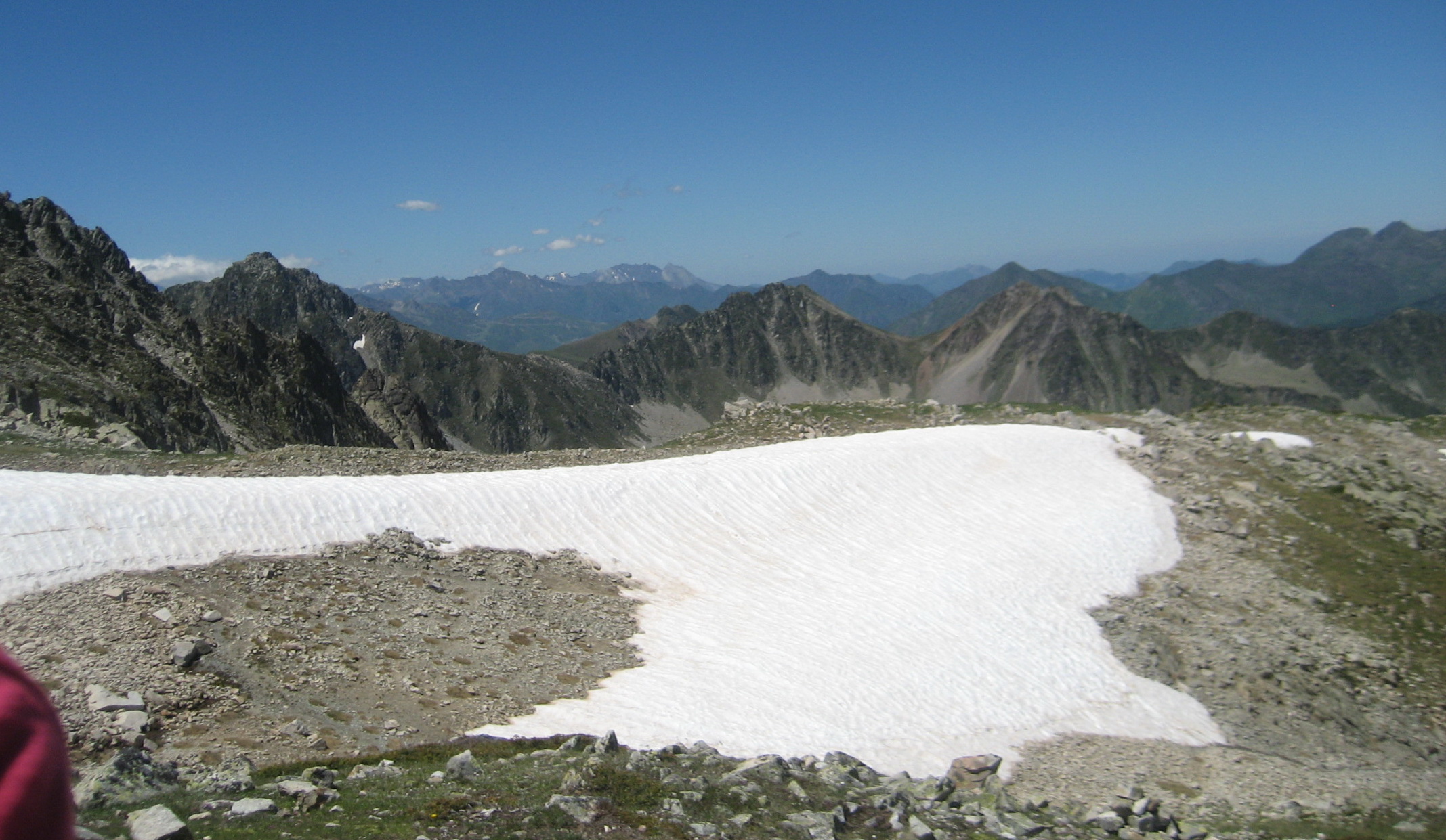 Aber nach dem Frühstück (Frühstückszeit zwischen 5.30 und 7.00) sieht die Welt schon angenehmer aus, und ich sehe blauen Himmel mit toller Fernsicht auf den Vignemale.