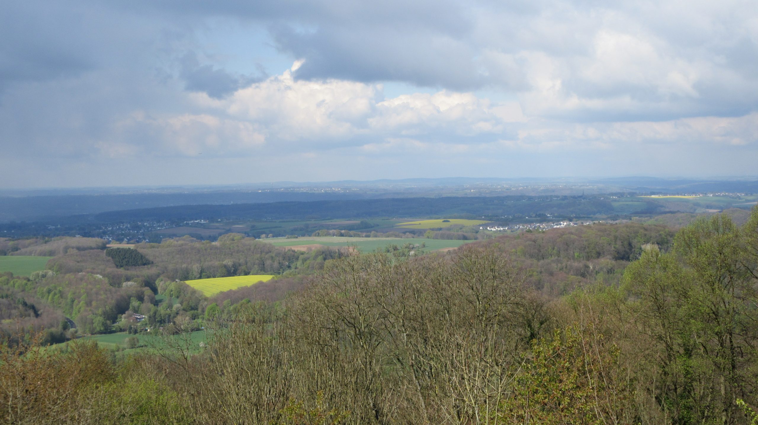 Buchenwälder, zwischendurch schöne Aussichten und trotz der Osterferien nur sehr wenige Wanderer. Am Nachmitttag erreiche ich dann die sehr fotogenen Ruinen des 1803 aufgehobenen Zisterzienserklosters Heisterbach, das inzwischen von Augustinerinnen weitergeführt wird, und dann komme ich nach einem Schauer mit Hagel und eiszeitlichem Nordwind zu einem Steigenberger Hotel oberhalb von Königswinter – mit genialem Blick ins Tal. Aber das Hotel selbst ist überall mit Stacheldraht (-rollen !) abgezäunt, Videokameras und Zielscheinwerfer auf Schritt und Tritt – ich denke Paranoia pur !! Bis mir dann später beim Lesen eines Tourismusprospekts in Königswinter klar wird, dass dieses Hotel auf dem Petersberg das Gästehaus der Bundesrepublik Deutschland ist, und alles was in der Weltpolitik Rang und Namen hat, schon einmal auf diesem Schloss eingeladen war…..
