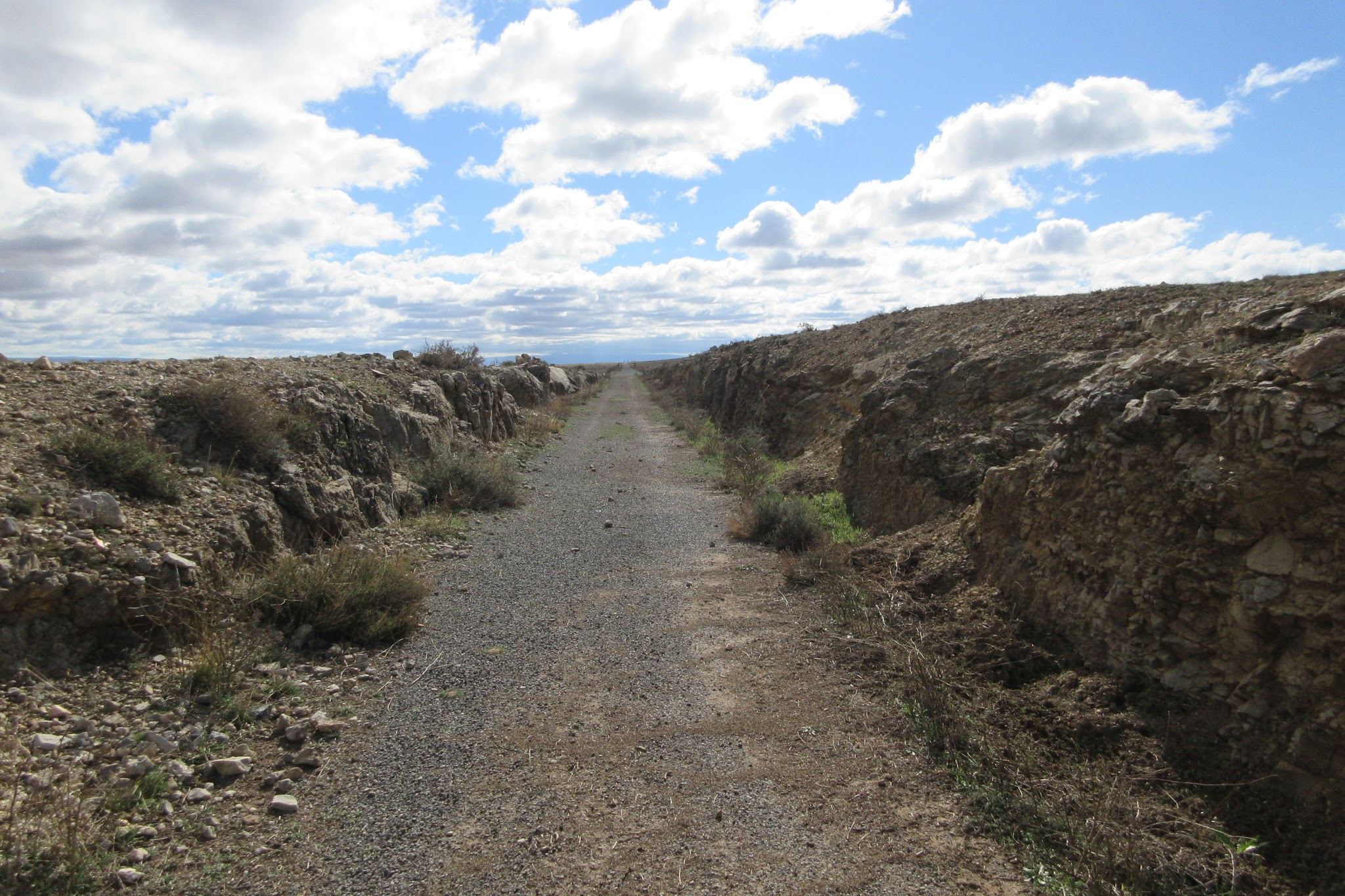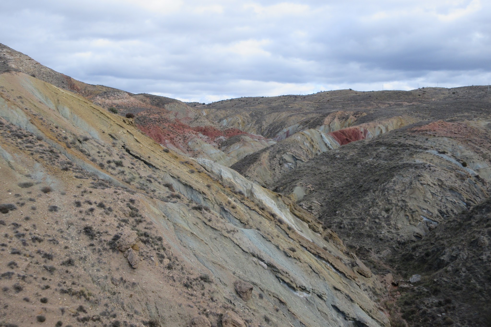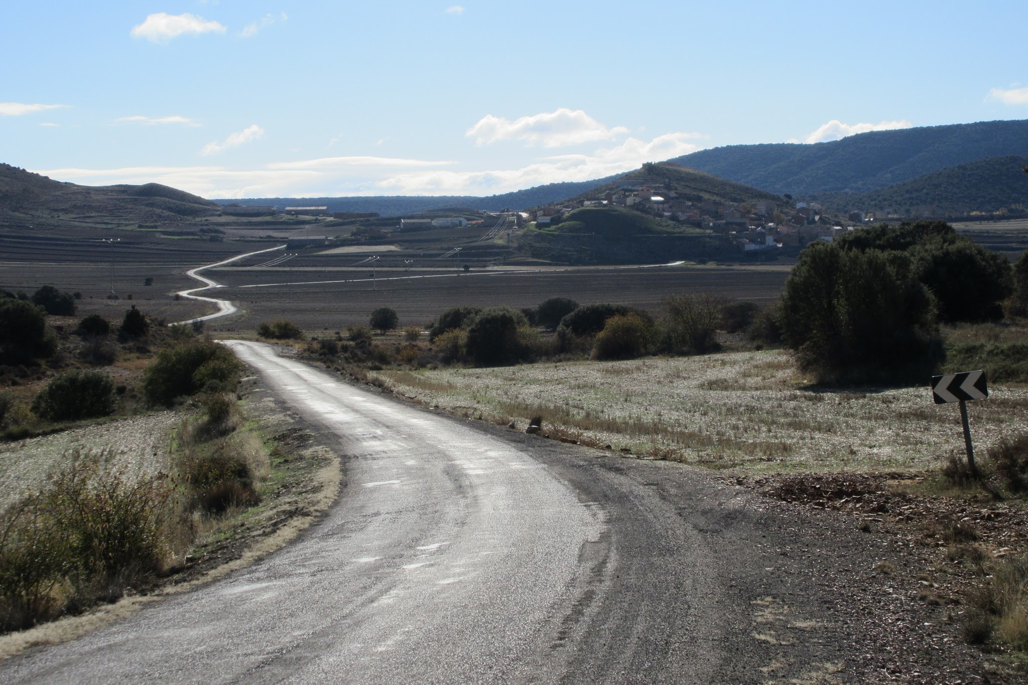 Heute Morgen: Die Wasserpfützen sind überfroren, ein eisiger kräftiger Nordwestwind. Und los gehts nach Ojos Negros mit Gegenwind bergauf. Stunden später…. . Keine Lust, die Relikte des alten Bergbaus zu suchen. Nur nach Süden Richtung Meer – mit Rückenwind. Eine phantastische Landschaft mit unheimlicher Weite und völlig menschenleer – ich fühle mich in einem amerikanischen Roadmovie….Ab Santa Eulalia dann der offizielle Weg – noch nie bin ich so schnell 100 km gefahren… bergab mit Rückenwind ( und bei der Kälte keine Lust auf längere Pausen…). Aber trotz allem ein wahnsinniges Erlebnis mit unbeschreiblichen Farben in dieser unglaublichen Weite !