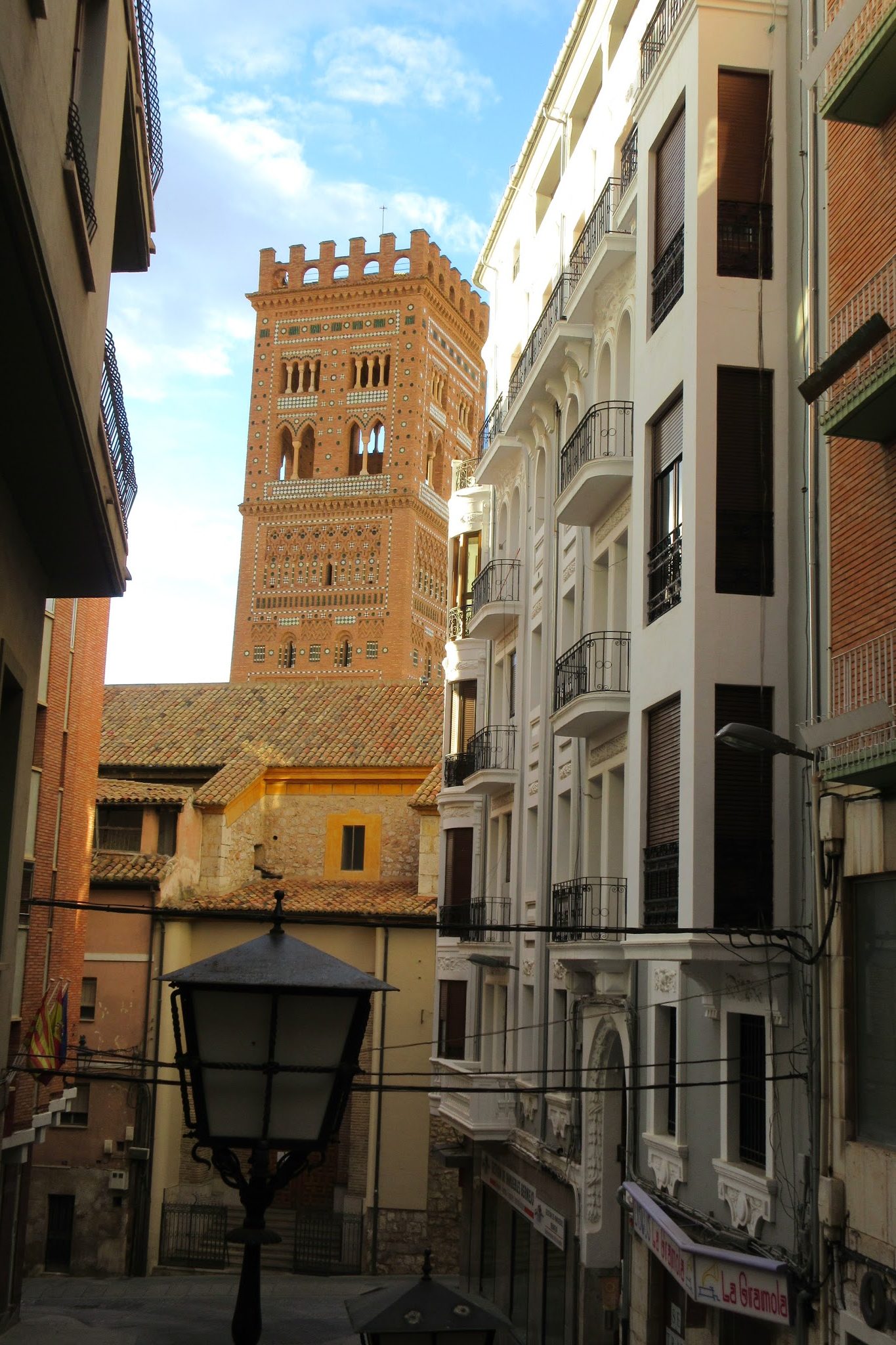 In Teruel dann mein Hostal- wiederum gut und günstig. Im Ort sind die Türme der Stadtmauer und die Kathedrale in einem ganz eigenen Stil aus Backstein und farbiger Keramik – und die neueren Bauten des Modernismus (Anfang 20. Jh) ahmen das nach. Sieht toll aus….