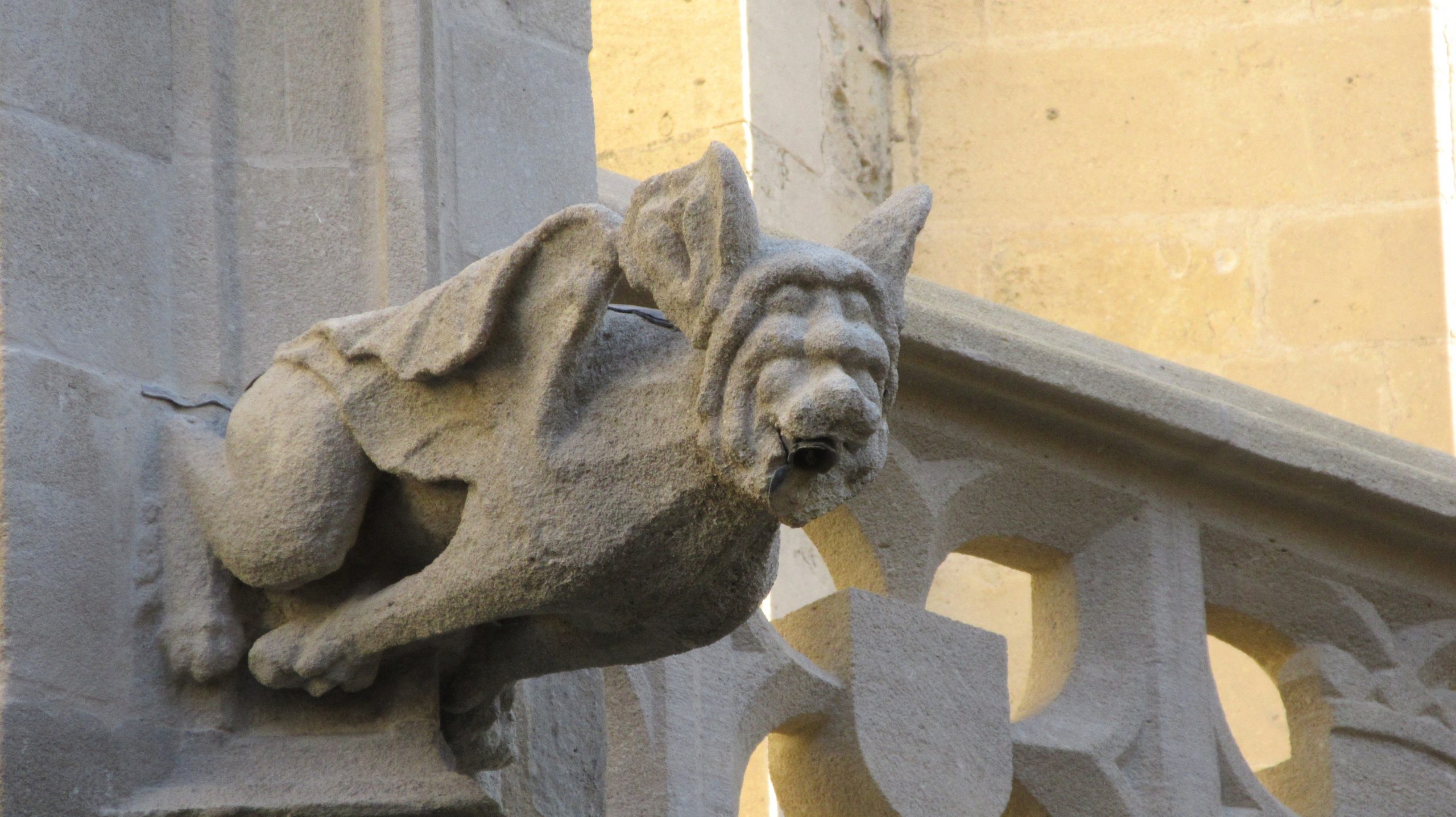 Der Kreuzgang ist zwar an sich überhaupt nicht ansehnlich – aber wie hier in der Gegend ganz häufig, mit phantasievollen, furchterregenden Wasserspeiern geschmückt (den französischen Ausdruck „Gargouille“ finde ich viel ausdruckskräftiger). Was ist damals bloß in die Leute gefahren, solche Monster an den Kathedralen zu verewigen. Was für ein Bild von der Welt steckt dahinter?!