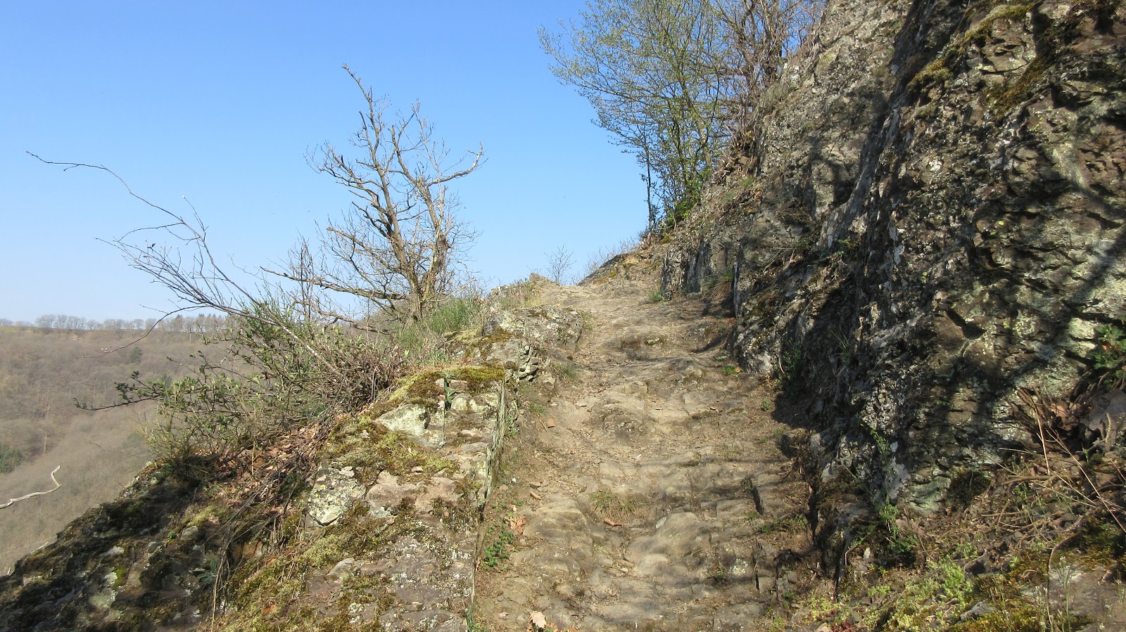 Auf dem Weg sehe ich ein Restaurant, das Ostermenüs auf Bestellung zum Mitnehmen anbietet – gute Idee, und auf jeden Fall zur Zeit die einzige Möglichkeit, überhaupt etwas zu verkaufen. In Walporzheim habe ich mein Rad dann wieder geparkt und bin über den Ahrsteig zurück gewandert. Auch heute sind einige Steigungen zusammengekommen – auf so ca. 1000 Höhenmeter komme ich schon pro Tag: das ist zwar weniger als in den Alpen, aber so für den Anfang der Wandersaison gar nicht so schlecht…