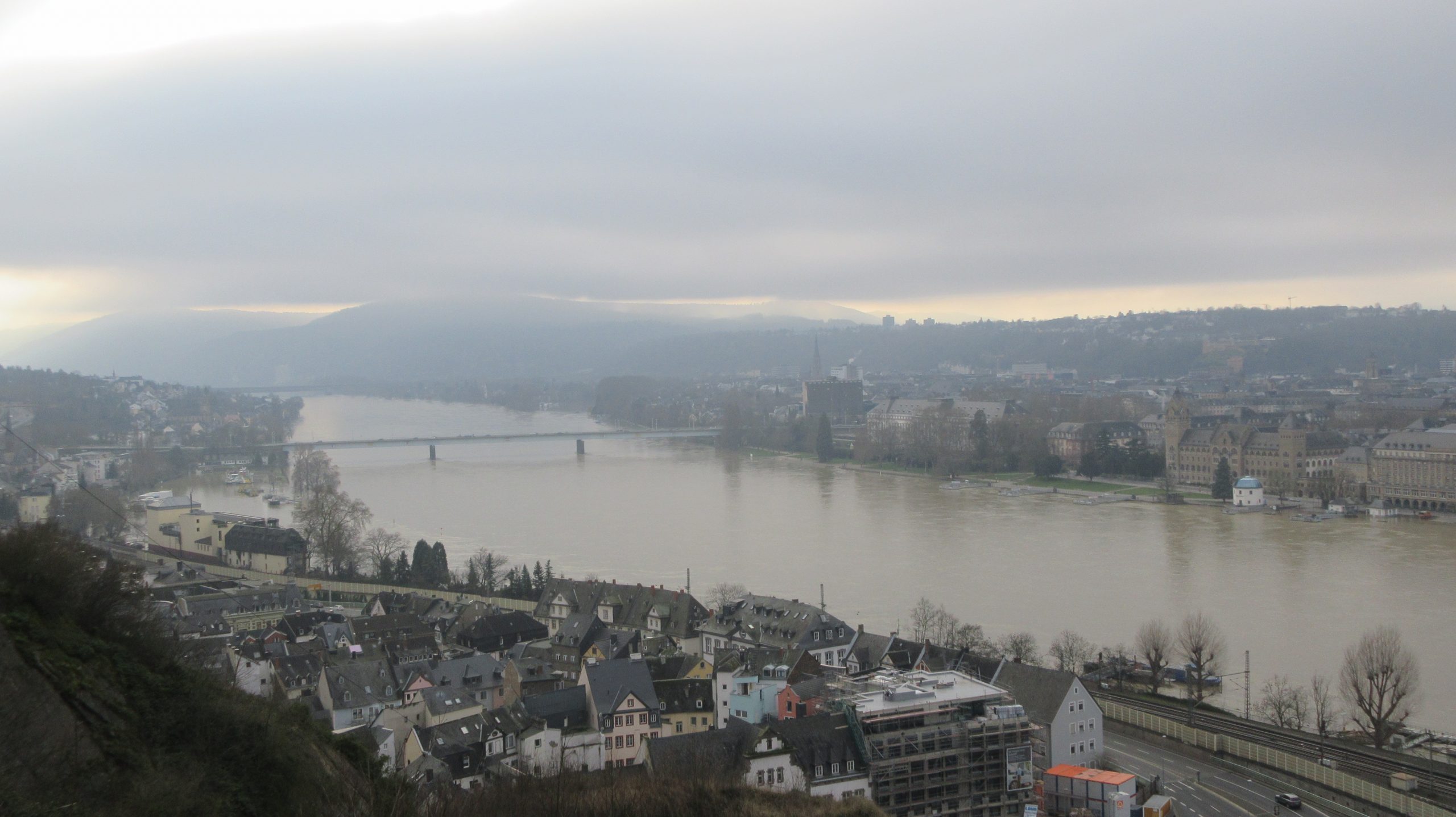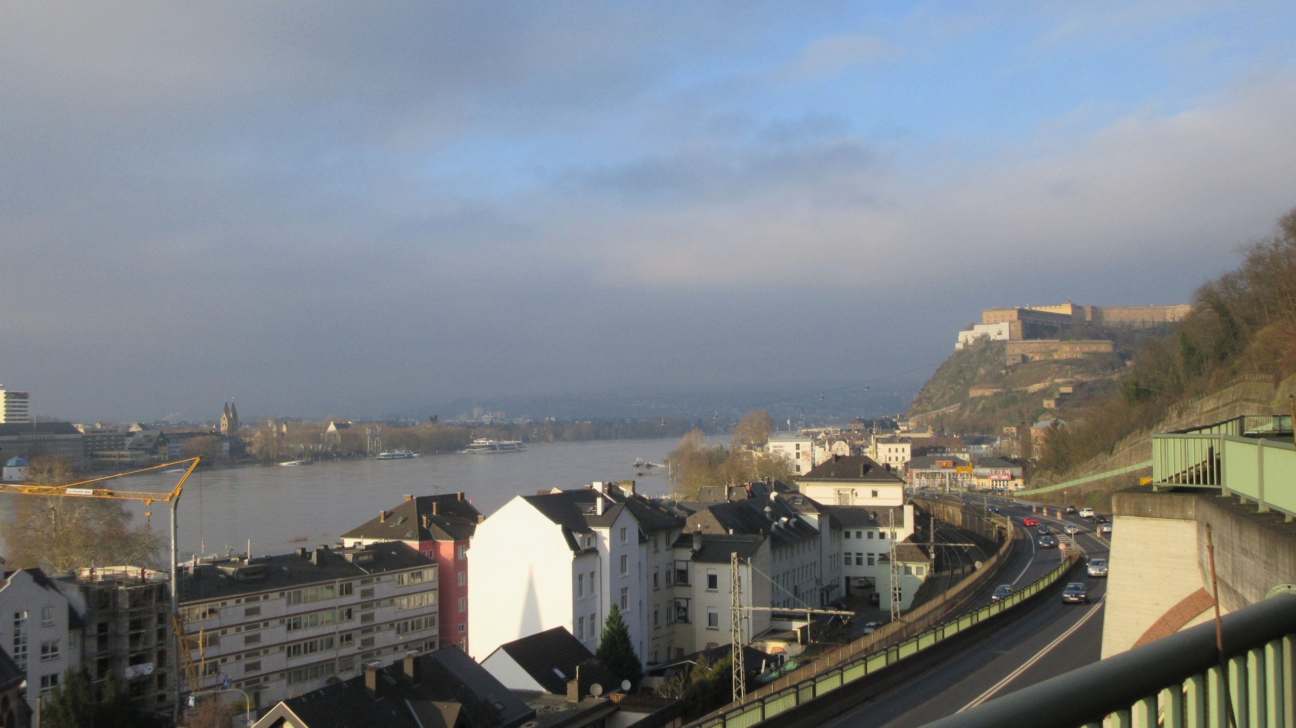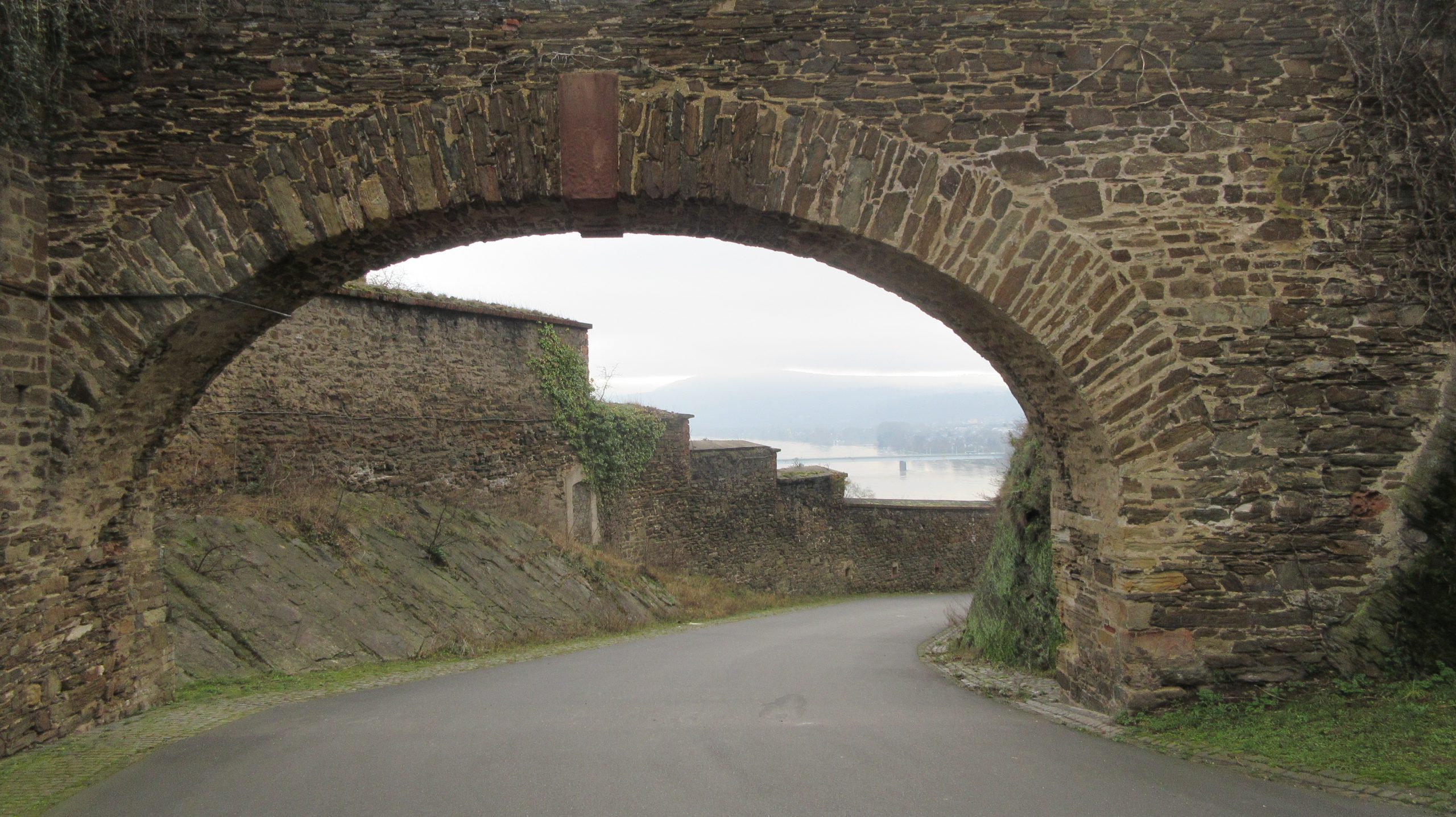 Nach leckerem Frühstücksbuffet (manchmal hat ein besseres Hotel auch seine Vorteile) wandere ich in der Sonne auf Wegen, die dem Rheinsteig alle Ehre machen: auf halber Höhe, da wo früher Weinstöcke und Obstgärten waren und sich heute Buschwald ausbreitet, und manchmal auch einige Meter höher durch niedrige, geduckte Steineichenwälder, zwischen denen die Schieferfelsen hervortreten.